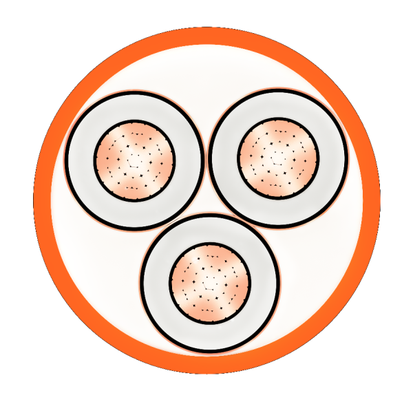 THREE CORES, COPPER WIRES(COPPER TAPE) UNARMOURED,PVC SHEATH 3.6/6(7.2)KV